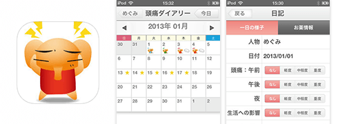 大塚製薬・ユーシービージャパンと共同開発した、てんかんの患者さん・ご家族のためのてんかん発作日誌アプリ。日々の体調や発作、服薬状況を記録できる他、服薬お知らせ機能も。