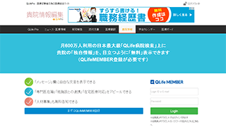 は、医療従事者に、QLife Proは、より専門的な医療情報や、医療現場で使えるツールなどを提供する、 医療従事者の為に作られた医療総合サービスサイトです。QLife MEMBERに会員登録【無料】する事によって、QLife Proで提供する、 下記のサービス全てをご利用頂く事が出来ます。